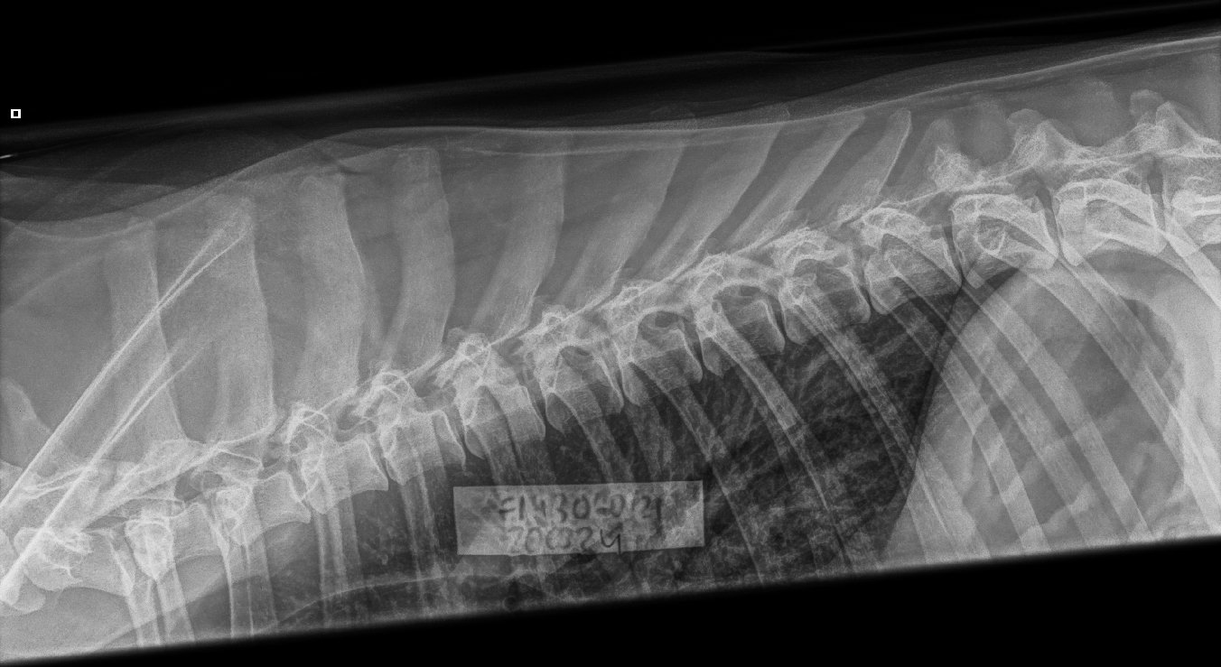 Olen röntgenkuvauttanut tanskandoggieni selät 2010 vuodesta lähtien lonkka- ja kyynäräkuvien ohessa. Näistä lonkka- ja kyynäräkuvat on pakolliset rekisteröinnin kannalta, selkä ei. Kahdella koirallani on todettu jo nuorena spondyloosi eli selkärangan rappeuma mikä voi aiheuttaa suurta kipua koiran elämään ja heikentää oleellisesti sen elämänlaatua. En rasittaisi selkäsairasta narttuani pennutuksella, jonka vuoksi haluan selän aina myös tutkia. Toisekseen uskon että alttius sairastua ko. sairauteen on jossain määrin perinnöllinen. Pentueen molemmat vanhemmat on kauttaaltaan kuvattu ja virallisesti lausuttu. Emällä täysin puhdas selkä, isällä lievä aste 1 spondyloosin osalta, mutta eläinlääkärin sanoin terve selkä.