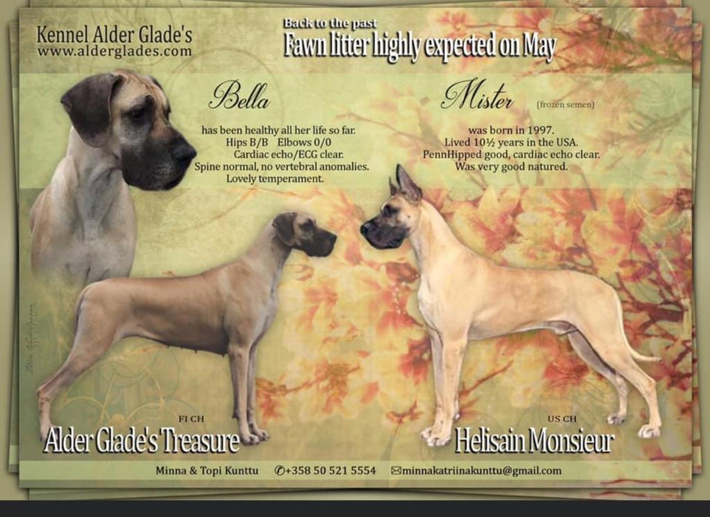 Tanskandoggeilta vaaditaan virallinen sydänkuuntelu, - ultra ja 5 min ekg ja nämä toki molemmilta vanhemmilta on tarkastettu ja voimassa astutusajankohtana.