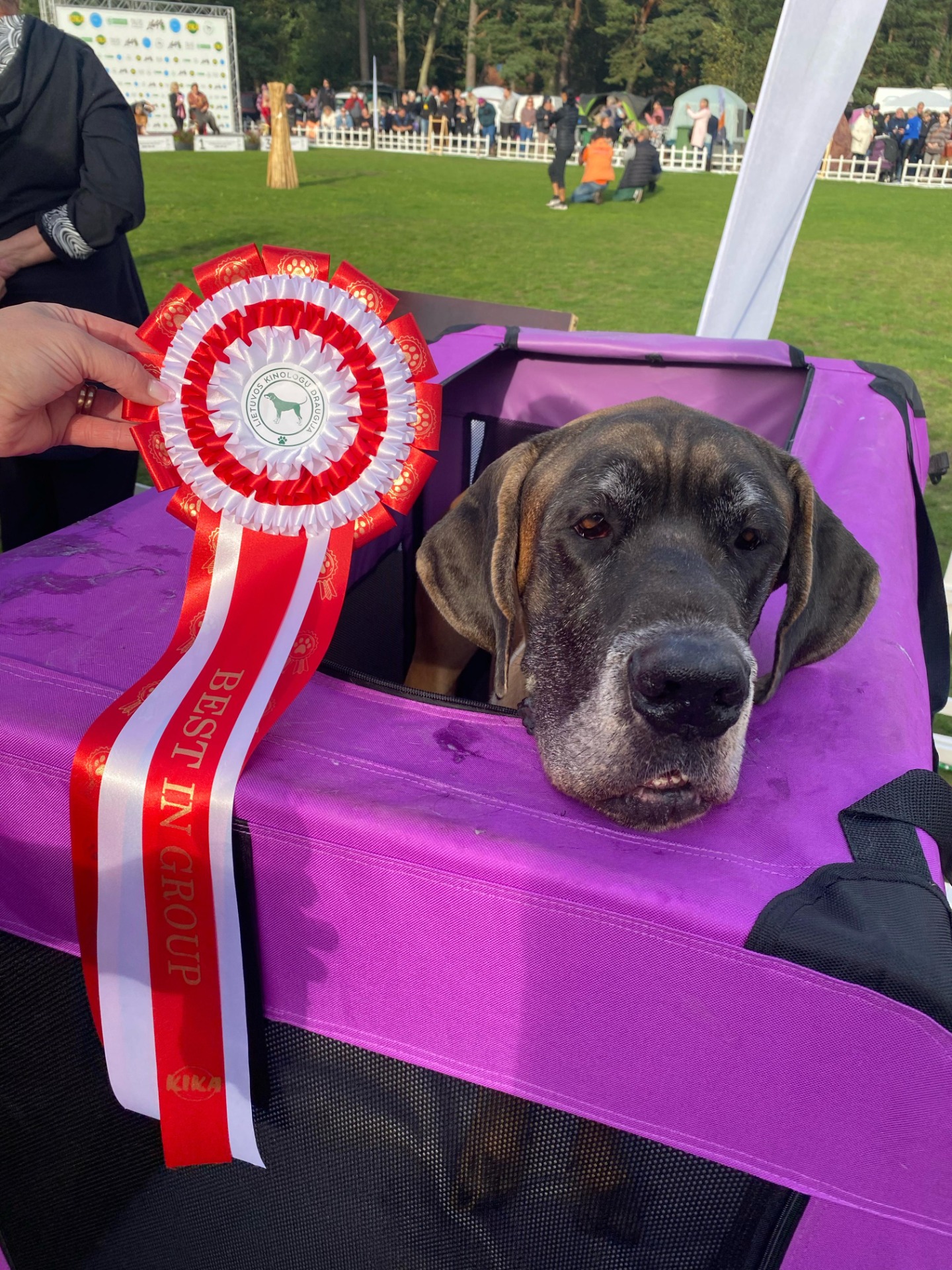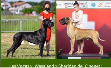 Pate on kotoisin Sveitsistä Petra Blaserin kennelistä Vom Wasaland. Petran olen tuntenut pian 20 vuotta ja jaan paljon samaa näkemystä tanskandoggien kasvatuksesta erityisesti luonteen ja terveyden osalta Petran kanssa. Paten emä on Petran oma musta kasvatti Las Vegas vom Wasaland. Petra on yhdistänyt menestyksekkäästi mustia tanksandoggeja keltaisen ja tiikerijuovaisen kasvatustyöhönsä, mikä on tuonut myös sukutauluihin uusia koiria. Paten isä on Italiasta Marina Salmoraighin kennelin kuuluisa Sheridan De´` Cinegeti, jolla onkin runsaasti jälkeläisnäyttöä Euroopassa. Sheridanissa yhdistyy pohjoismaiset sekä italialaiset linjat. Lisää Paten taustoista Petran kotisivuilta: Home | wasaland.