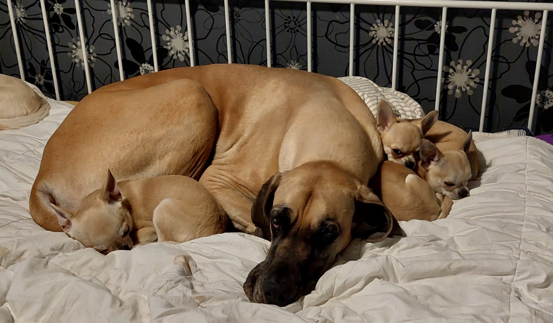 Kummankin vanhemman sukutaulussa erittäin pitkään eläneitä tanskandoggeja.